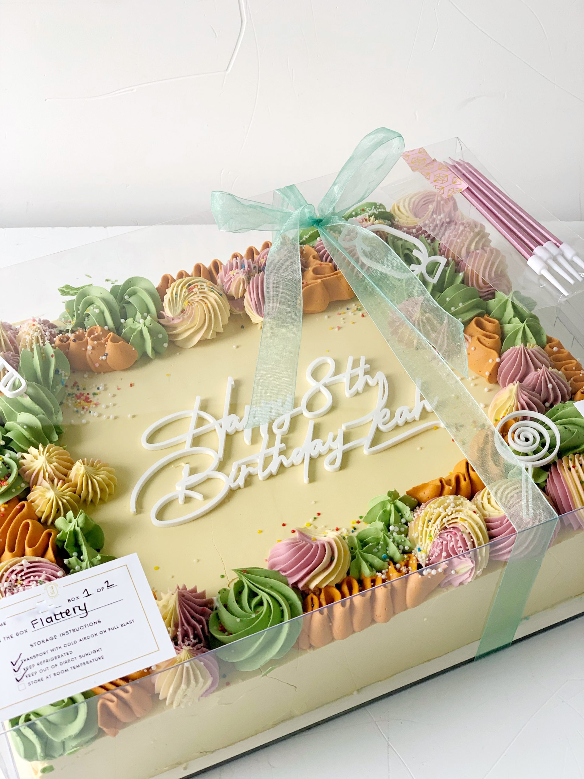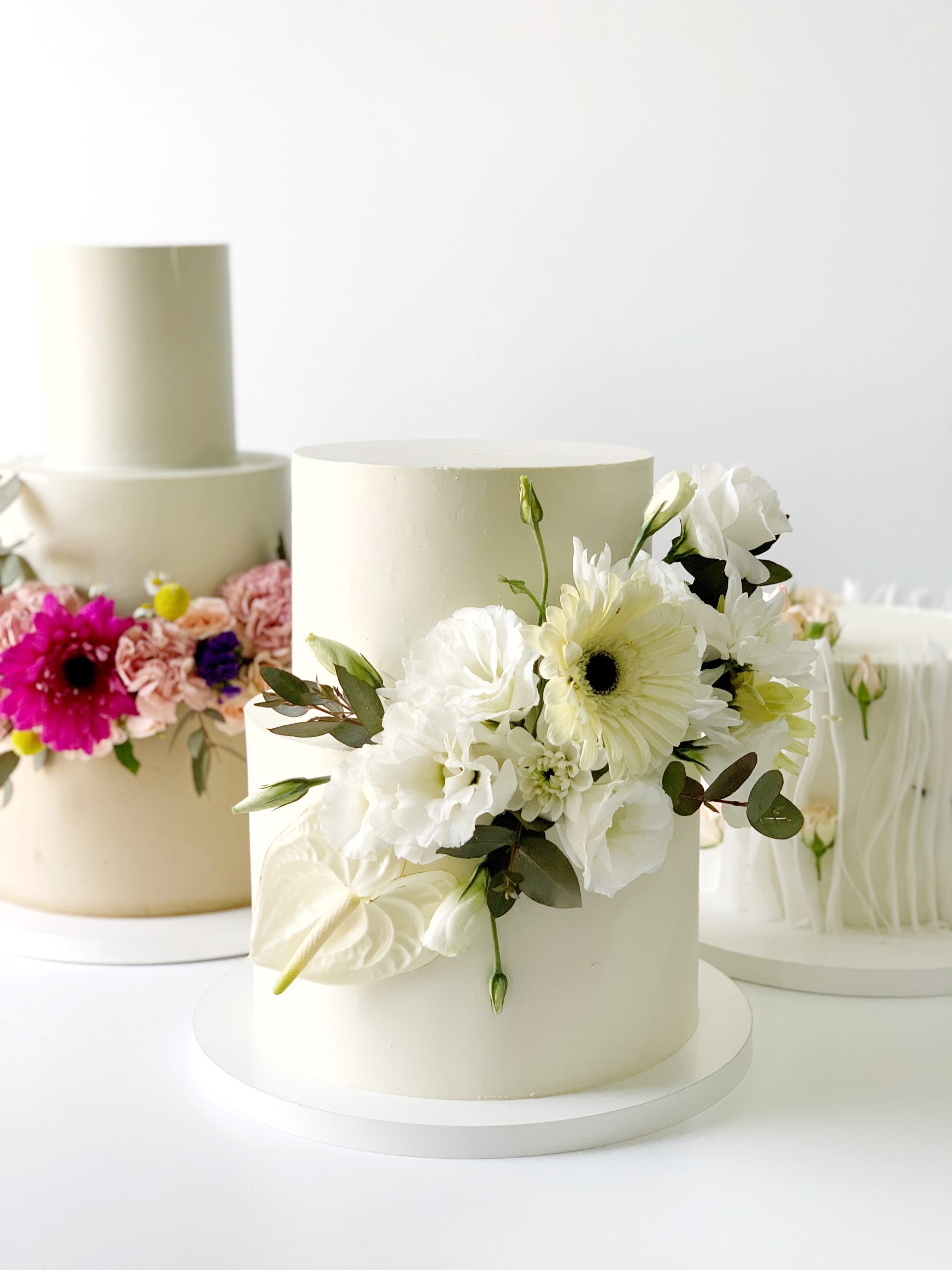 Our cake style is simple elegance. We love using beautiful soft colours to create a canvas ready to be adorned with stunning florals, edible treats or a fun & stylish cake topper.